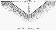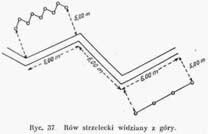Jazdę w terenie stosuje się podczas całego szkolenia kawalerzysty, zwiększając trudności odpowiednio do postępów jeźdźców. 107. Wybór organizacja terenu.Dla ułatwienia instruktorom prowadzenia jazdy w terenie, należy zawczasu w formacji przygotować kilka tras. Trasy te, stopniowo od łatwiejszych do trudniejszych, powinny mieć od 5 do 12 km. Wybór tras powinien uwzględniać jak najróżnorodniejszy teren i przeszkody terenowe. W razie braku naturalnych przeszkód należy zrobić pewną ilość sztucznych, lecz typu wybitnie terenowego i najczęściej spotykanego. Przeszkody powinny być stałe. Organizacja takich tras zapewnia formacji jednolitość wyszkolenia w jeździe konnej i pokonywania przeszkód terenowych. Nie powinno to jednak krępować instruktorów i zwalniać ich od wyboru innych terenów, nadających się do prowadzenia jazd terenowych. 108. Prowadzenie jazdy w terenie.Instruktor dzieli swoich jeźdźców na, o ile możności, nieduże grupy. Każda grupa pod dowództwem podoficera. W każdej grupie jeźdźcy są rozmieszczeni dowolnie, lecz w taki sposób, aby podoficer mógł łatwo zwracać na nich uwagę. Jeźdźcy nie powinni jechać zanadto zwarcie, aby nie przeszkadzać jeden drugiemu. Nie powinni się wyprzedzać i przecinać sobie wzajemnie drogi, lecz zachowywać kierunek i chód nadany przez prowadzących grupy. Prowadzący grupy stosują się do kierunku i chodu nadanego przez instruktora i prowadzą swe grupy w taki sposób, aby on widział cały zastęp. Zastęp w taki sposób ugrupowany prowadzi instruktor drogami, ścieżkami, po polach, lasach, przez zarośla, słowem po terenie najróżnorodniejszym, jaki ma do dyspozycji. Chody stosuje się odpowiednio do terenu, pory roku, wyszkolenia jeźdźców i stanu koni. Zastęp rozjeżdża się w wyżej opisany sposób na komendę "Za mną - rojem". Jeżeli się ma do przebycia cieśniny, gdzie nie wystarcza miejsca na jazdę rojem, wówczas środkowi jeźdźcy jadą tym samym chodem za prowadzącym zastęp, po jednemu lub po dwu, zależnie od miejsca, reszta przytrzymuje konie i dołącza się w ślad w odległościach umożliwiających dostateczne widzenie przebywanego terenu, lecz w żadnym wypadku nie może się rozciągać więcej niż na odległość 3 koni jeden od drugiego. Po przebyciu cieśniny jeźdźcy ponownie jadą rojem. 109. Odbywanie dłuższych przemarszów.Dla zaoszczędzenia sił konia przy odbywaniu dłuższych przemarszów, należy przestrzegać następujących zasad: