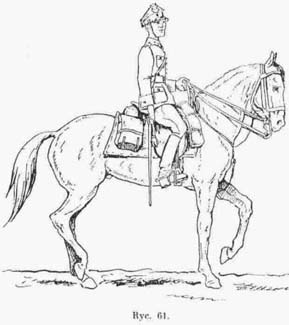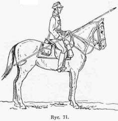 Po wejściu na koń w myśl rozdziału A jeździec do ćwiczeń we władaniu bronią białą przybiera dosiad opisany w § 151.