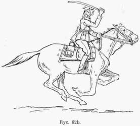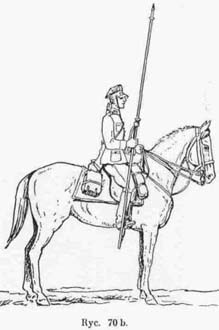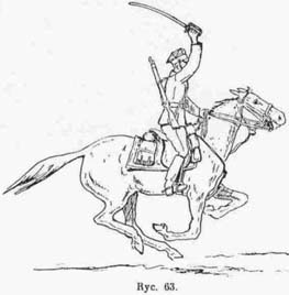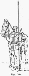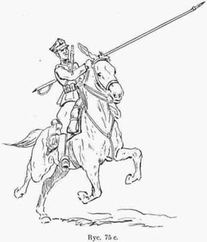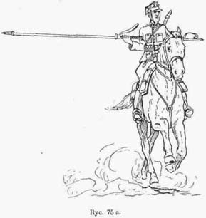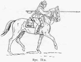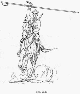 Równolegle z władaniem szablą pieszo, z użyciem pozorników, oraz z władaniem lancą pieszo, należy szkolić rekruta we władaniu lancą i szablą na osiodłanym drewnianym koniu.